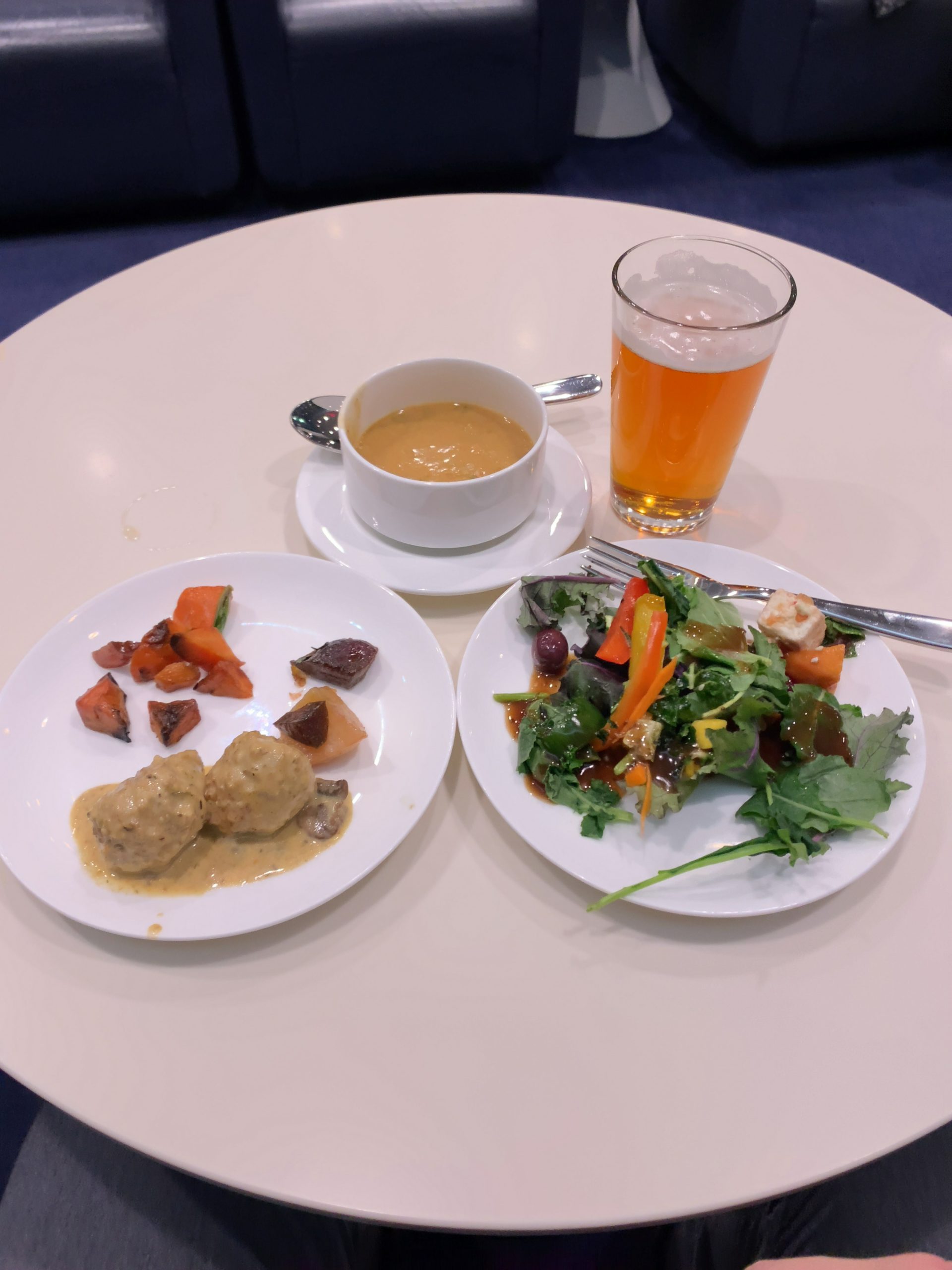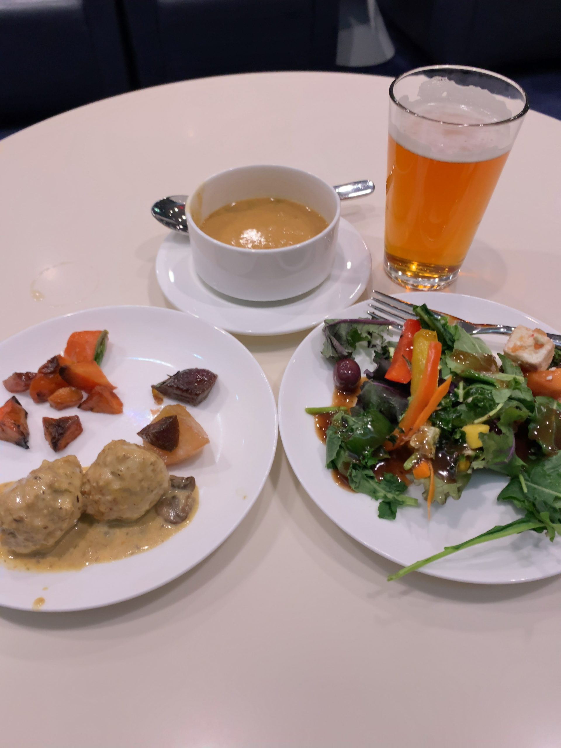ニューヨークの滞在時間も終わりを迎え、次の目的地、バルセロナに向かいます。バルセロナへは、ルフトハンザ航空を利用して、ドイツのフランクフルト経由で向かいます。ルフトハンザ航空のラウンジは、初めて見る料理が多くて、興味をそそられました。