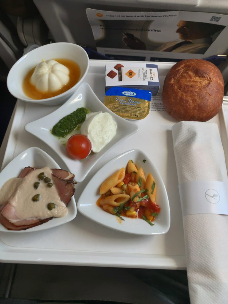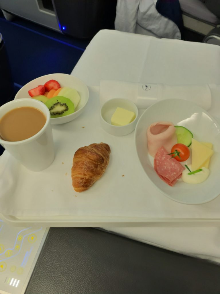 ニューヨークのラウンジで欲張って飲み食いしたせいか、飛行機で爆睡してしまい、気づいたら朝。。ルフトハンザ航空のビジネスクラスの機内食というめったに食べる機会がない夕食を食べそびれてしまいました。。残念。
