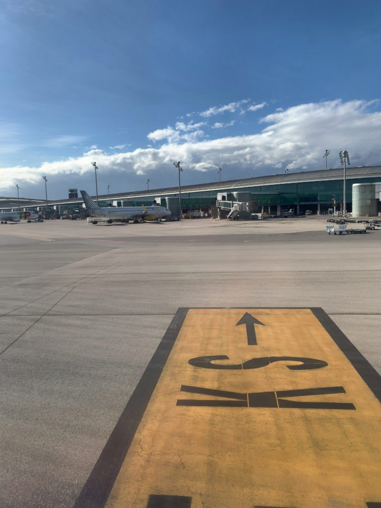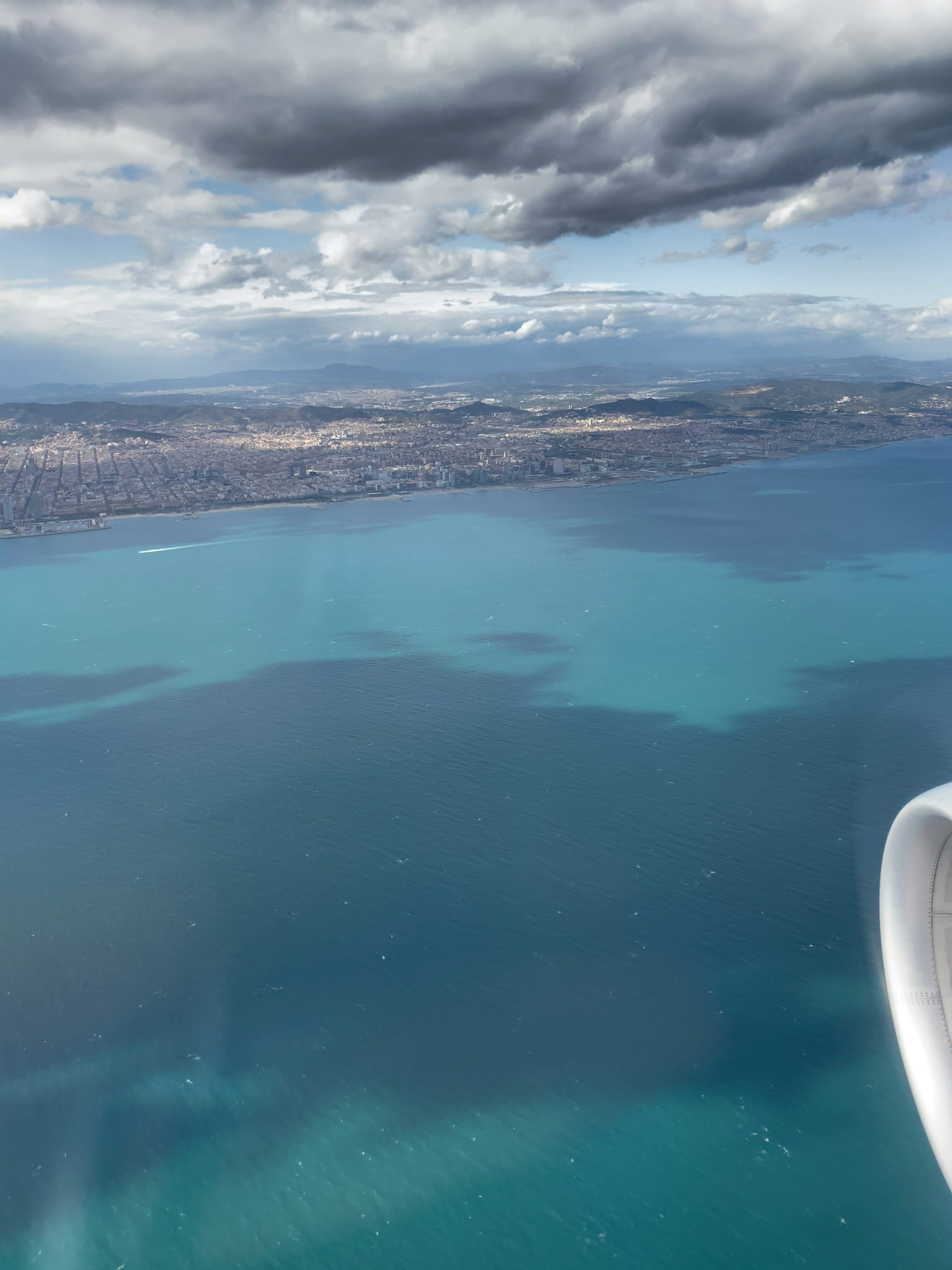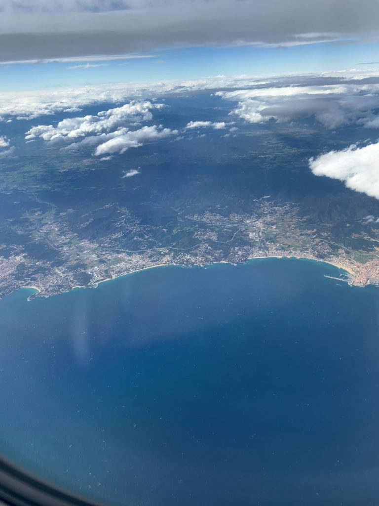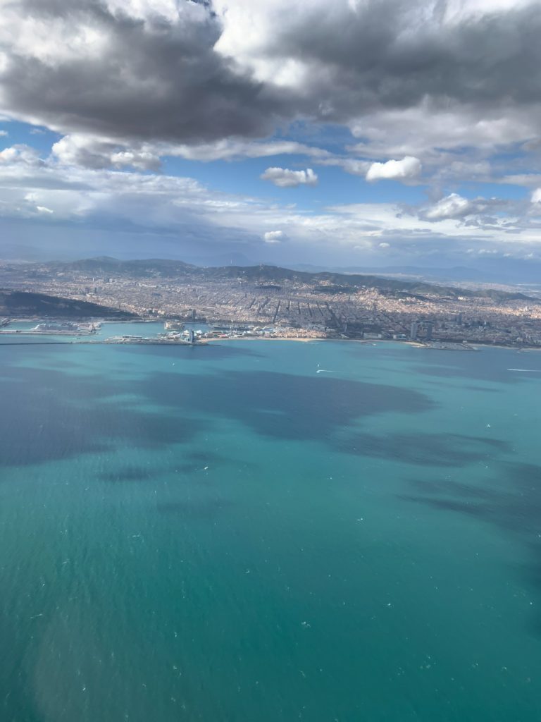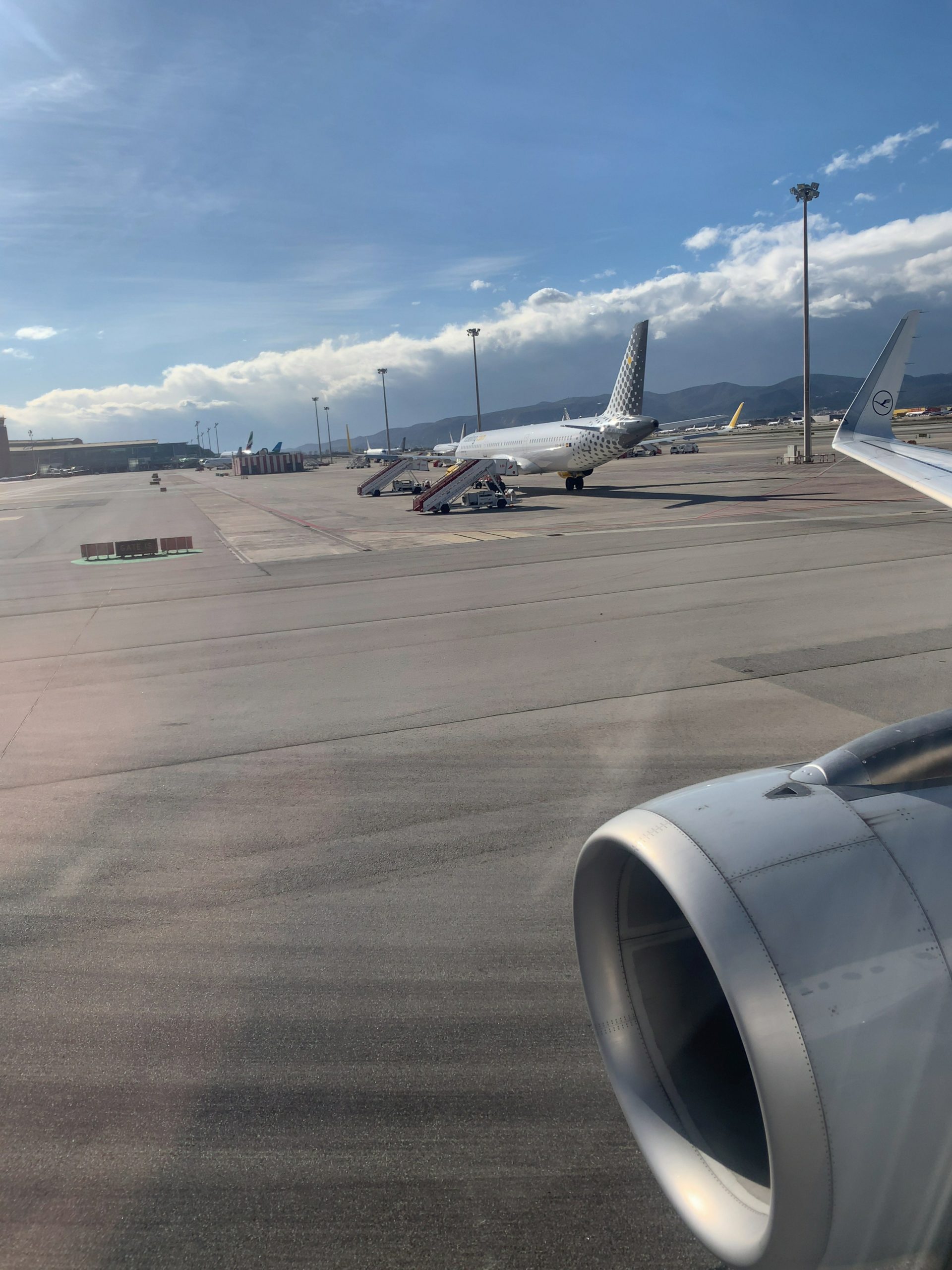 バルセロナ=エル・プラット空港に到着しました。きれいな海が見えて、テンションもあがります。