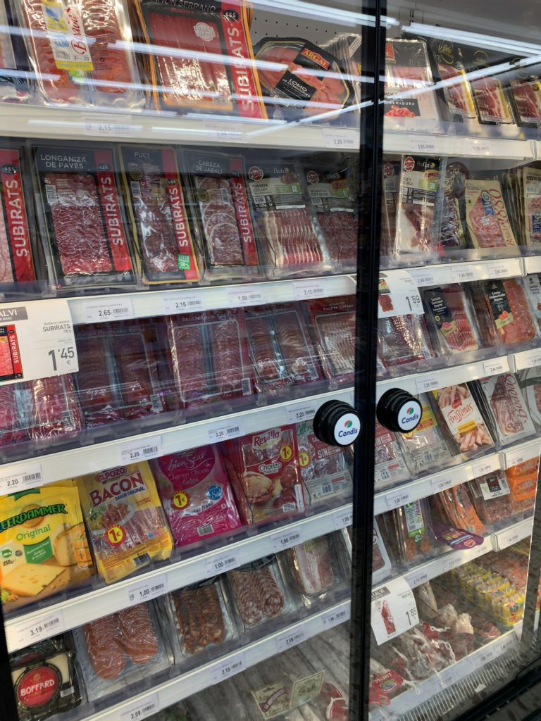ホテルの周りを散策してみます。スーパーマーケットがあったので、見てみました。スーパーもハムとサラミの充実がすごい。。