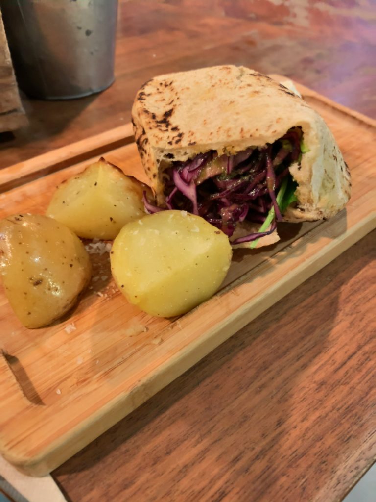 晩御飯を食べようとホテルの周りを探して、いい感じのレストランを見つけました。張り切ってお肉を食べよう思ったら、まさかのビーガンレストラン。。