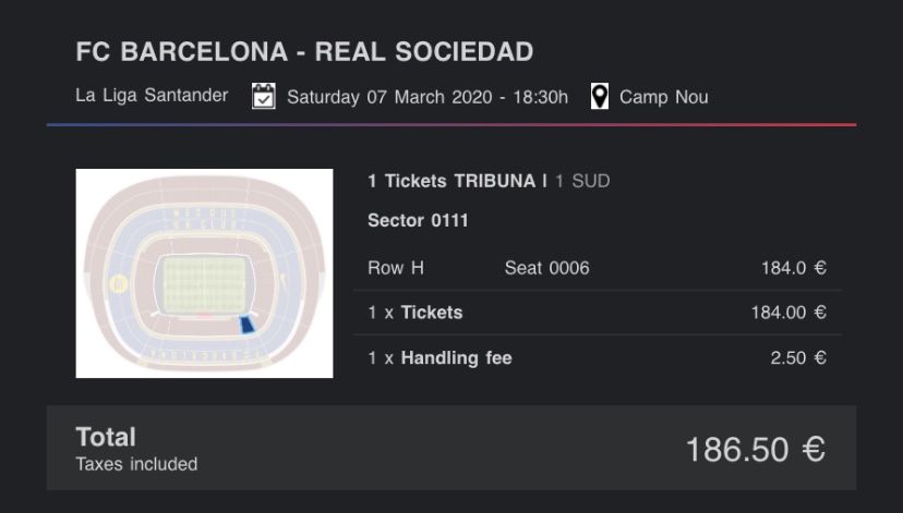 (FCバルセロナ)In case you are having problems while buying tickets, we recommend you to try to purchase again using a different computer or device (changing the computer IP), using a different browser and a different credit card and email address.