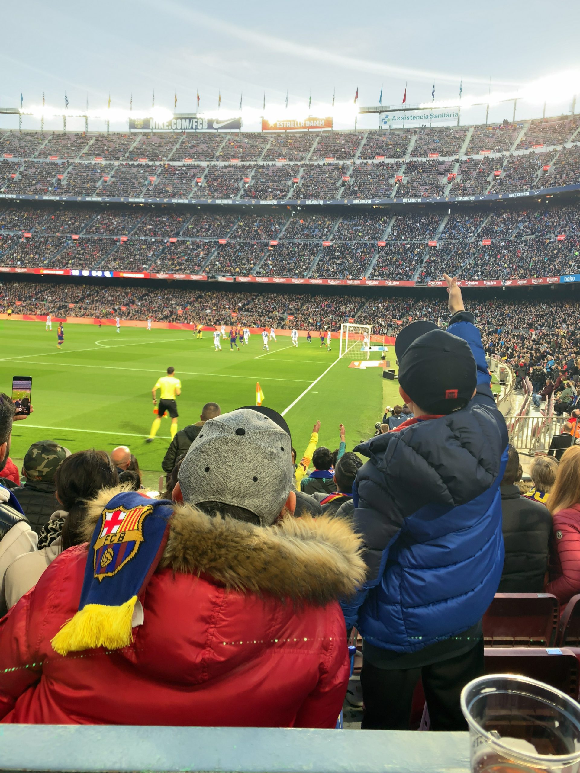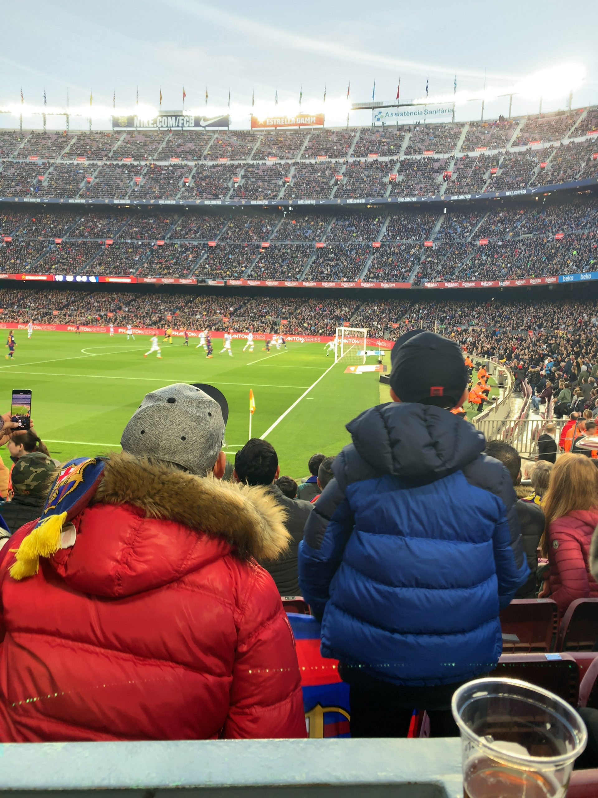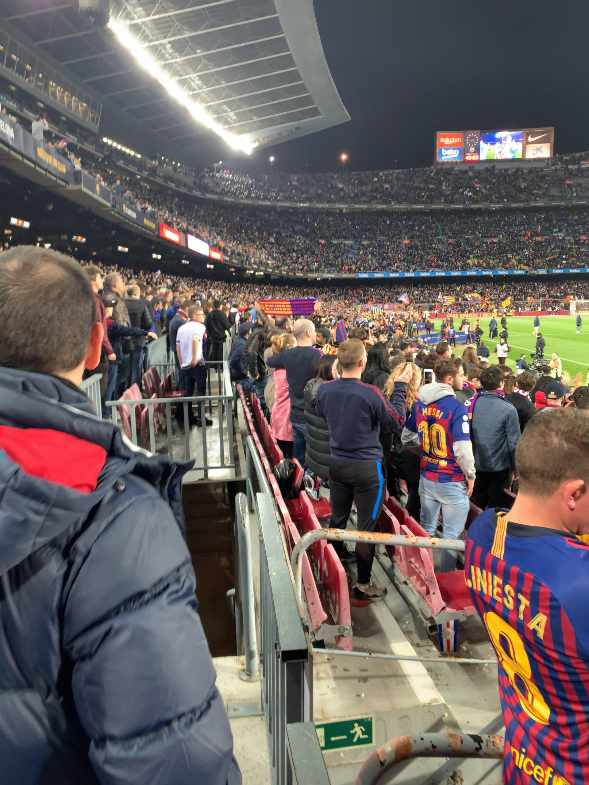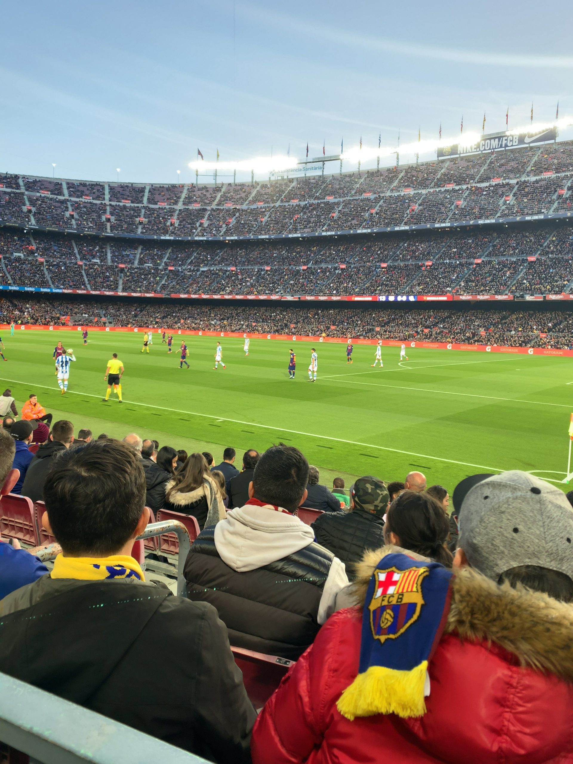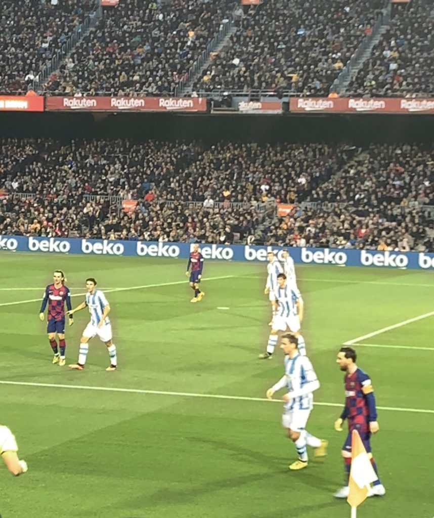ホテルから、カンプノウまでは地下鉄で一時間弱くらいで着きました。試合開始の少し前に着いたのですが、観客席はほとんど埋まっていて、みんな気合いいれて観戦に来てます。