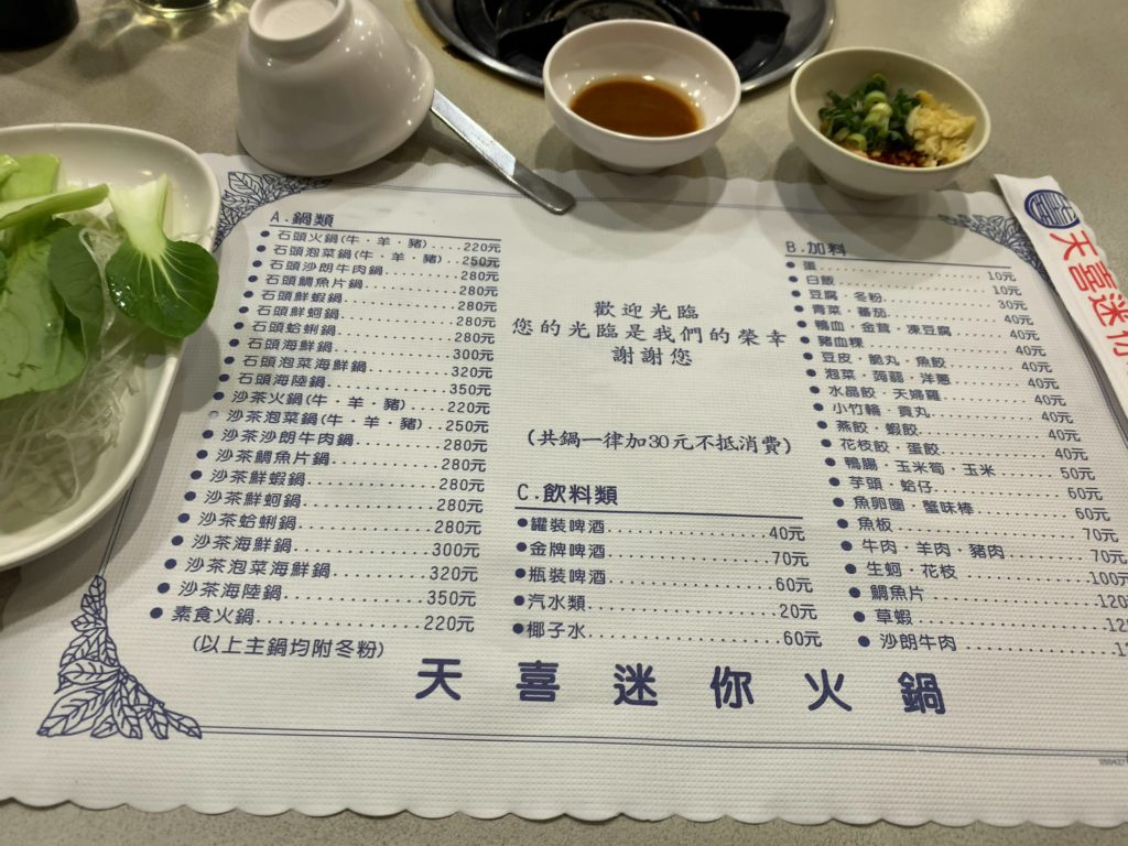 夕食は、「ひとり火鍋」が食べられる「天喜迷你石頭火鍋」に行きました。一人鍋スタイルで日本でもたまにしゃぶしゃぶ屋さんで見られるスタイルです。